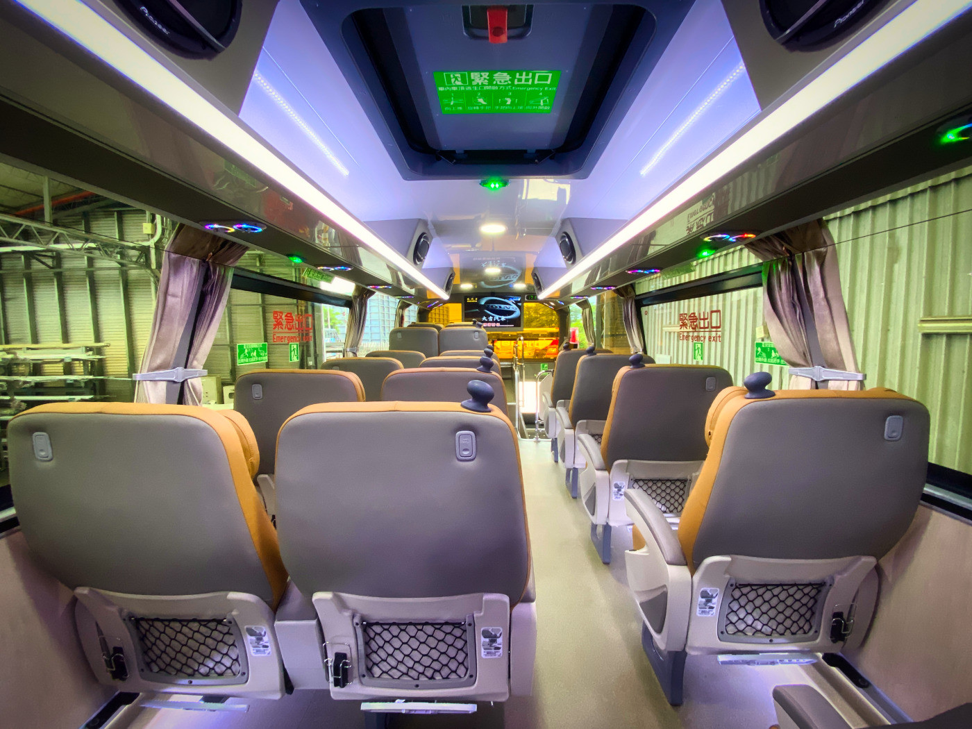 VOLVO B11R 做為星宇航空機組員從運籌報到中心往返桃園機場的指定接駁車。全車座椅採用媲美機上客艙相同色調的椅套布,另有低廢氣排放及低噪音的優點,符合歐洲六期環保排放的規定,可省下10%的燃油成本,是目前國內性能好的客用巴士。