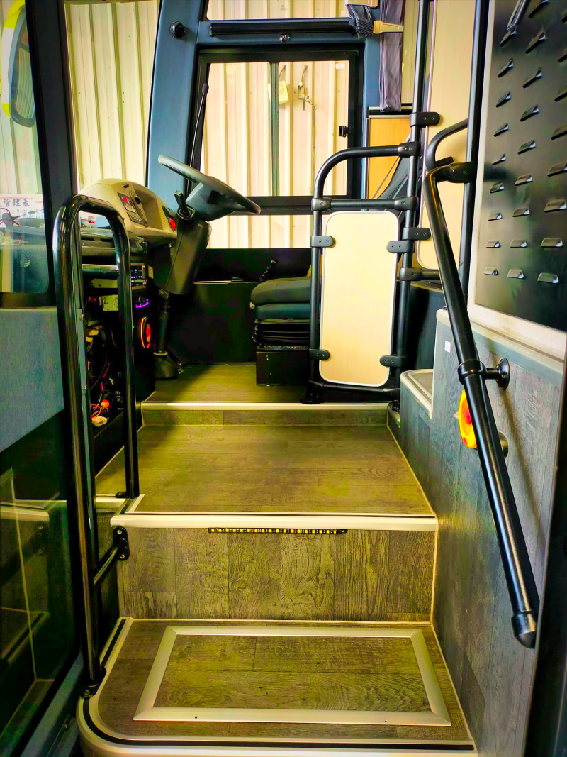 車廂內使用仿桃木地板及深色冷氣槽,令車內豪華感增加。
