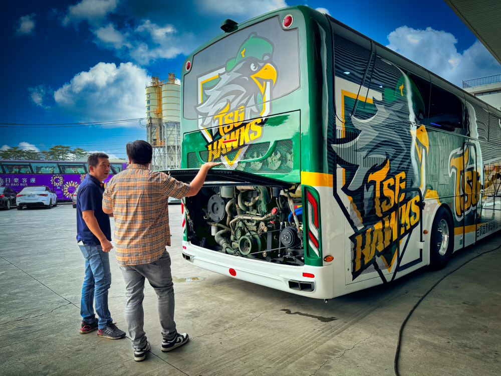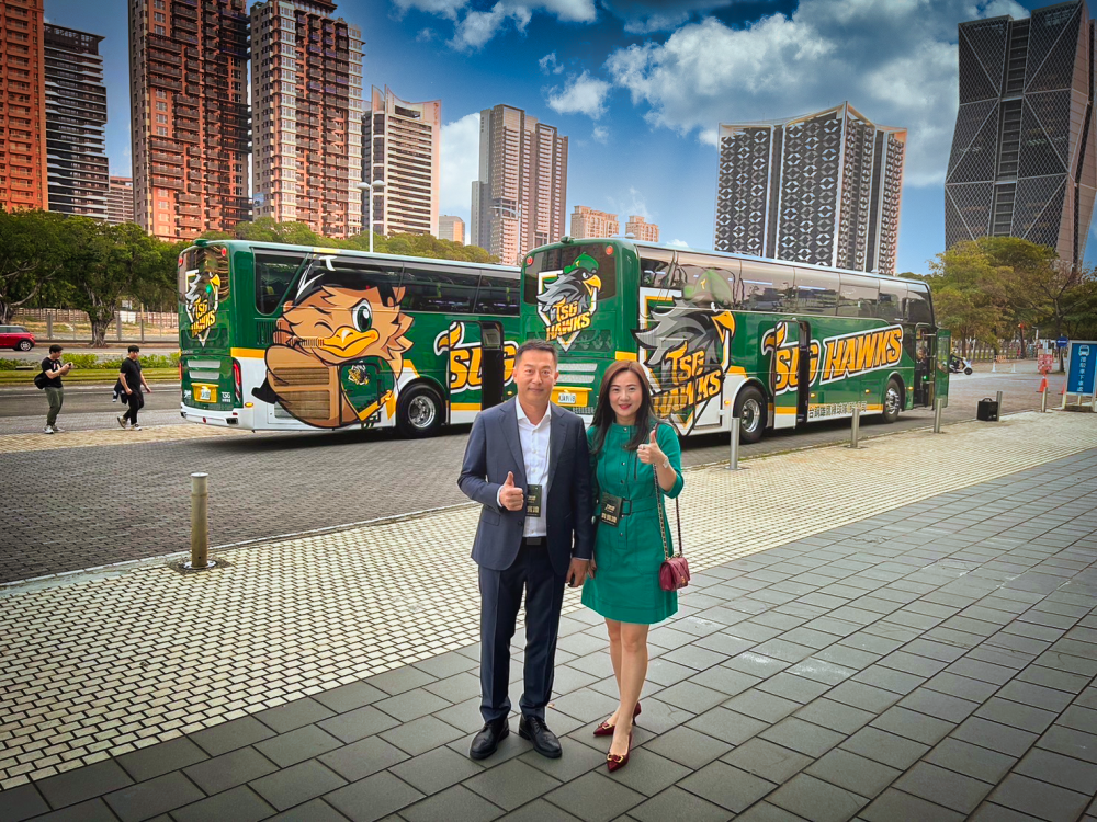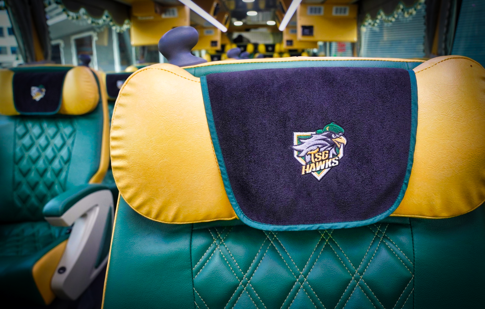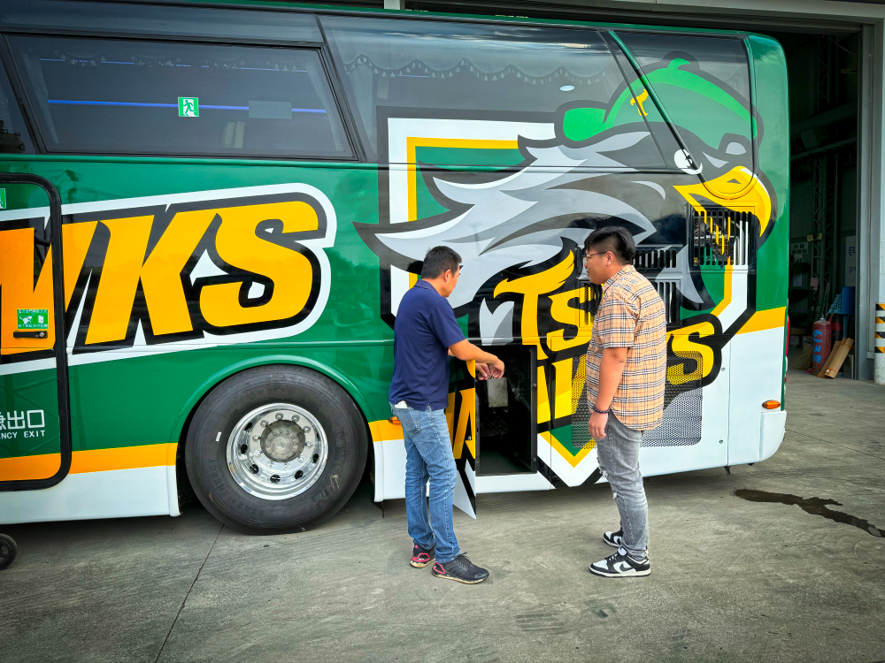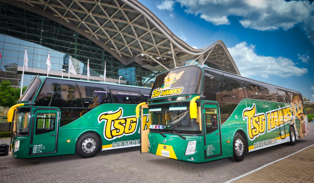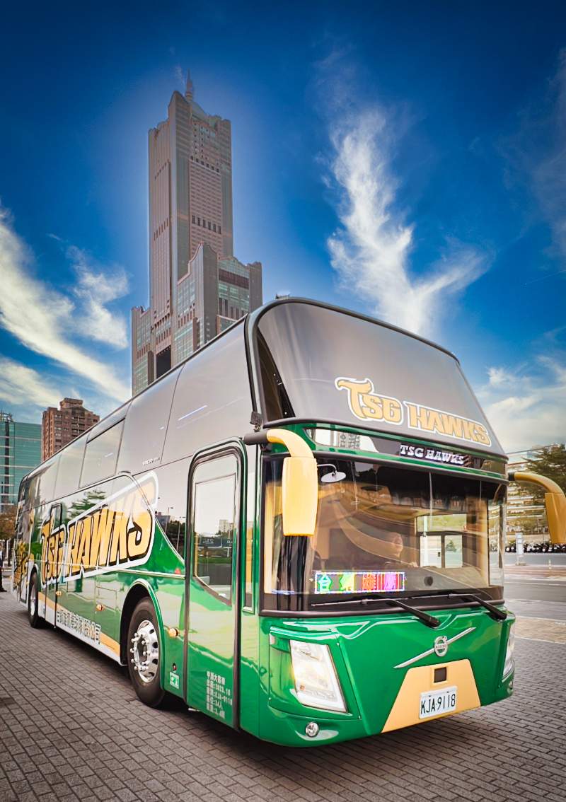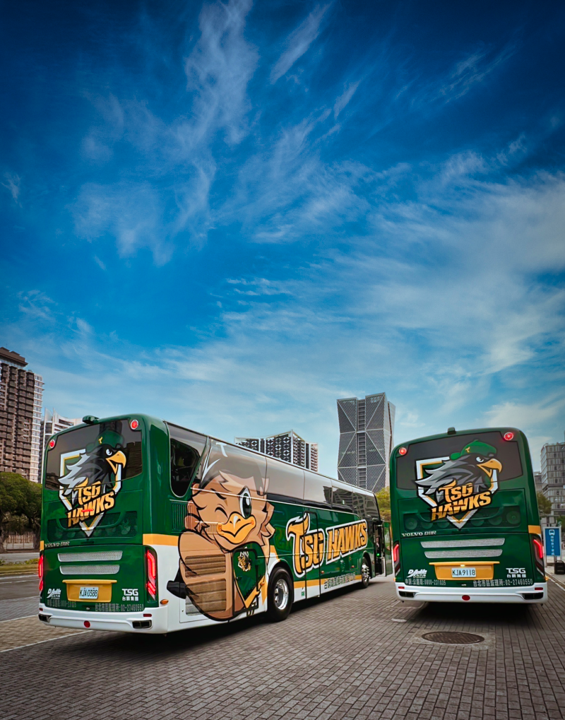 台鋼雄鷹隊巴兼顧安全與環保,加上精緻內裝、舒適座椅,讓搭乘歐六巴士的台鋼雄鷹團隊可以安心北伐征戰,兩款不同風格,第一台隊巴車身彩繪以隊徽帥氣呈現,第二台則是吉祥物「TAKAO」可愛登場,展現截然不同風格,未來兩台專屬巴士將陪伴台鋼雄鷹征戰。